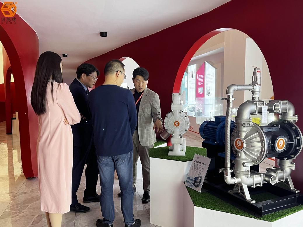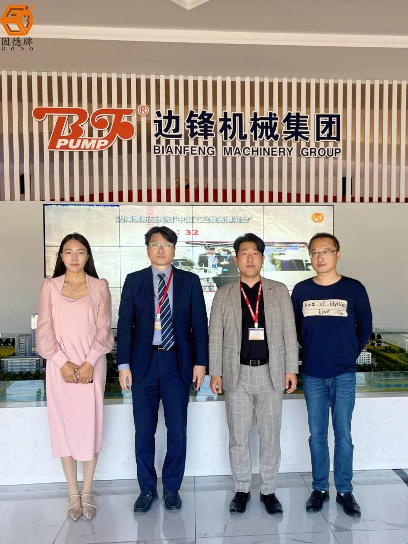 邊鋒國際事業部負責人代表公司陪同兩位韓國客戶代表參觀了公司展廳,并為他們講解了展廳里每款隔膜泵的型號、性能、應用領域、用途等方面。并深入參觀了邊鋒集團的現代化生產線、研發中心和質量控制中心。從半自動化流水線的高效運作到嚴格的質量管理體系,每一個細節都展示了邊鋒集團對產品品質的追求。